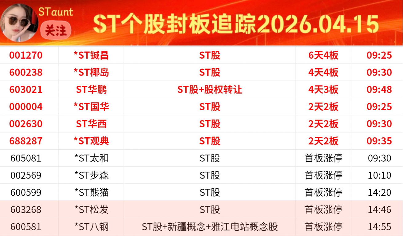 ST个股封板追踪D