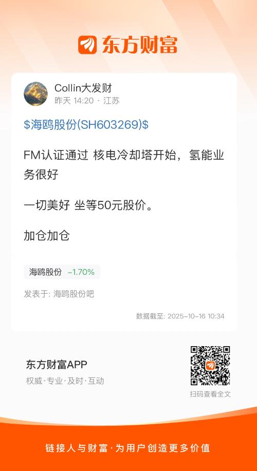 温馨提示: 1.根据《证券法》规定,禁止编造、传播虚假信息或者误导性信息,扰乱证券市场;2.用户在本社区发表的所有资料、言论等仅代表个人观点,与本网站立场无关,不对您构成任何投资建议。用户应基于自己的独立判断,自行决定证券投资并承担相应风险。《东方财富社区管理规定》