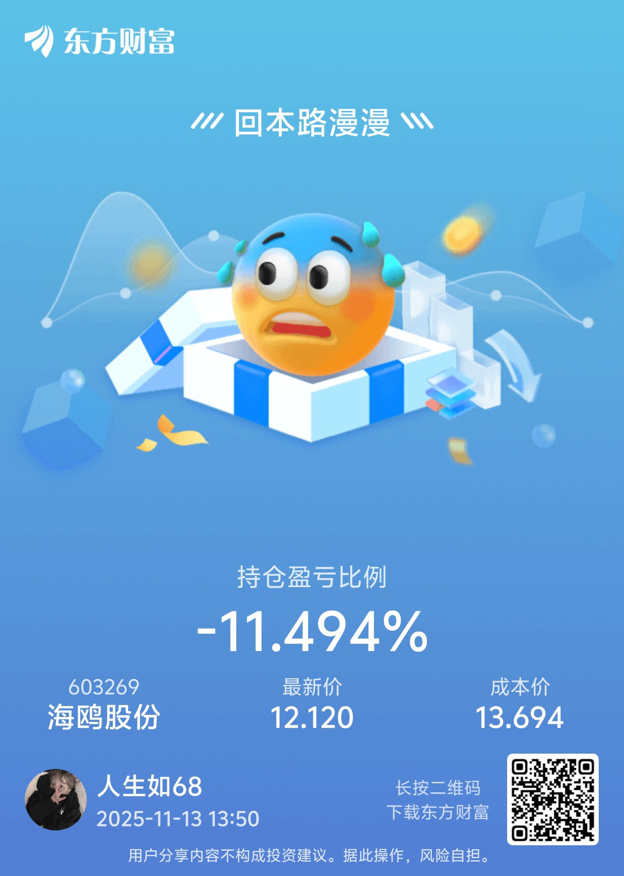 $海鸥股份(SH603269)$ 主力牛,这样子玩,割不割肉啊家人们,满仓没钱补