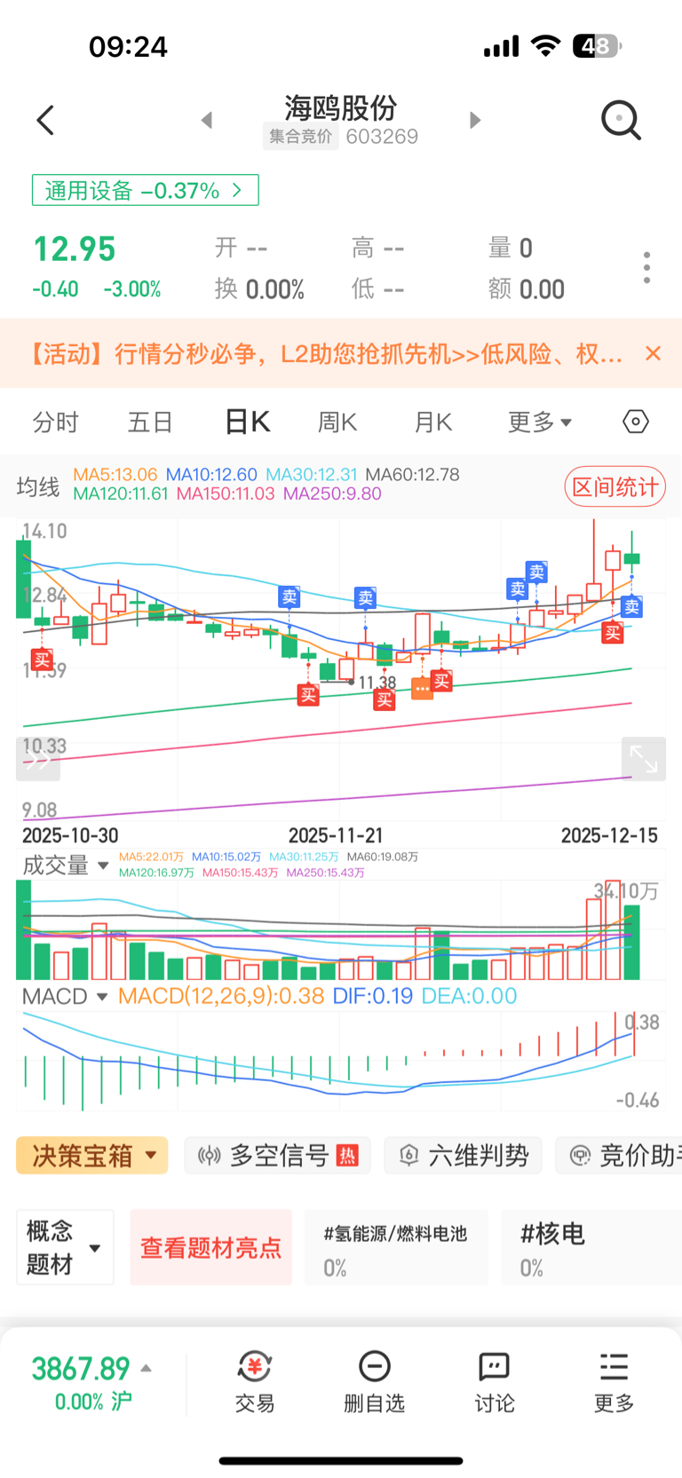 $海鸥股份(SH603269)$ 跑得快哈哈。跌吧主力。感谢主力