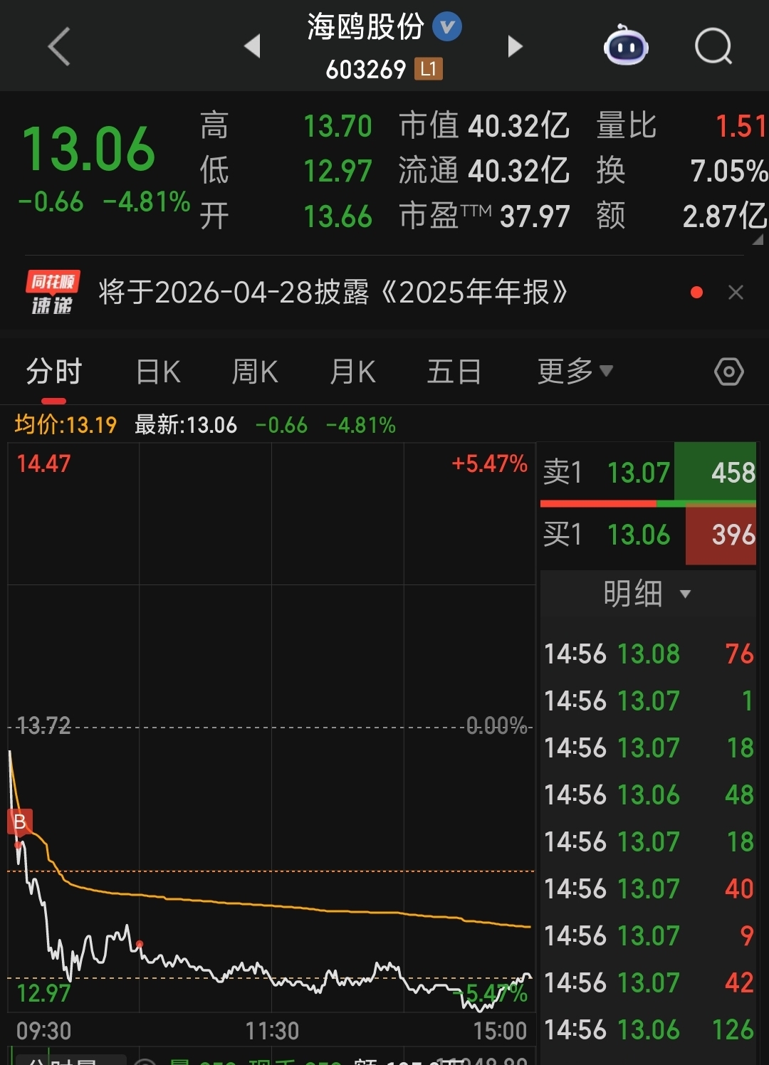 2、海欧股份(目前股价13.72)