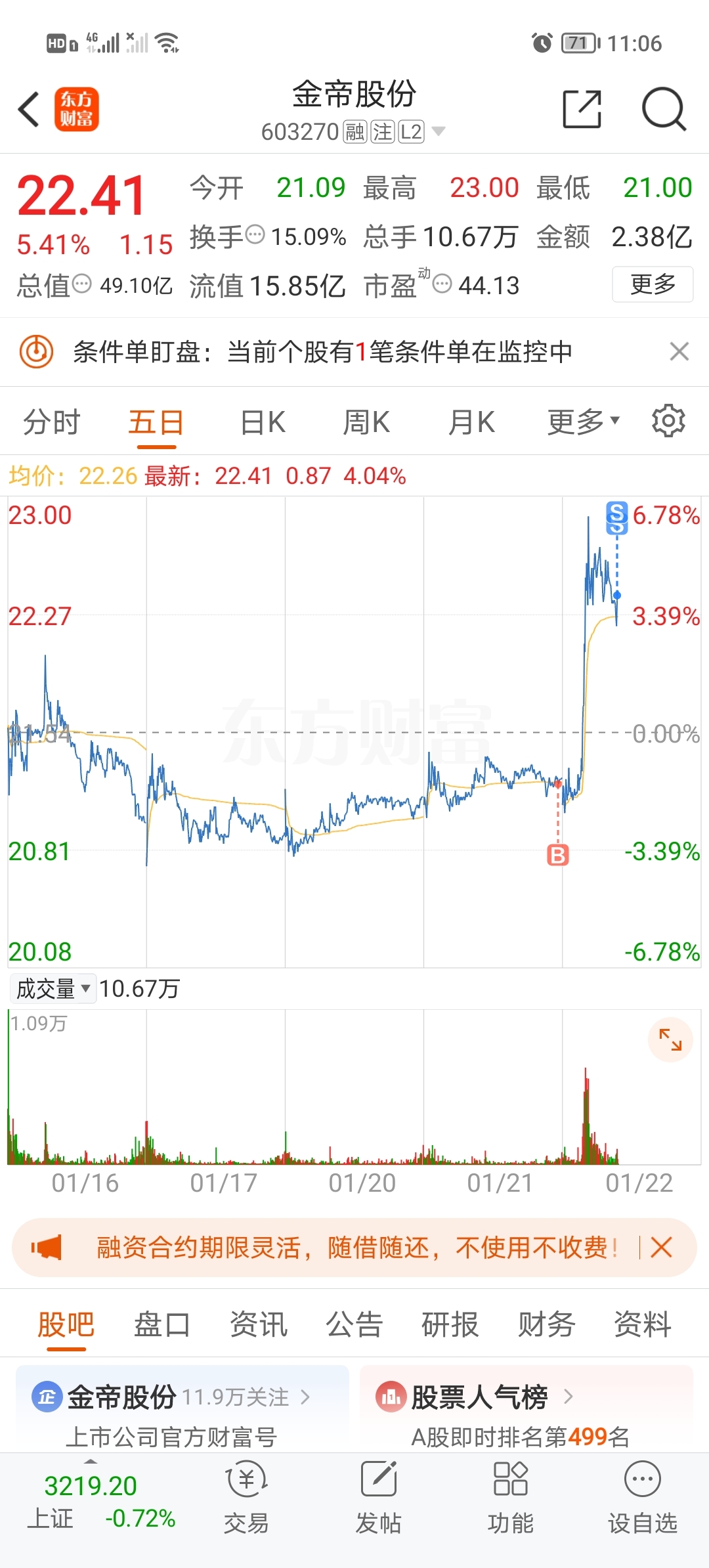 等了一个时,没动静,先出来了。按道理应该可以上板的,但是刚好拉到23这种整数数字就下来,像量化行为,不排除后面会跳水,有点走弱味道,后面的比较难猜,但是今天高点百分之九十概率已经显现了,先落袋了,祝留下的发财。