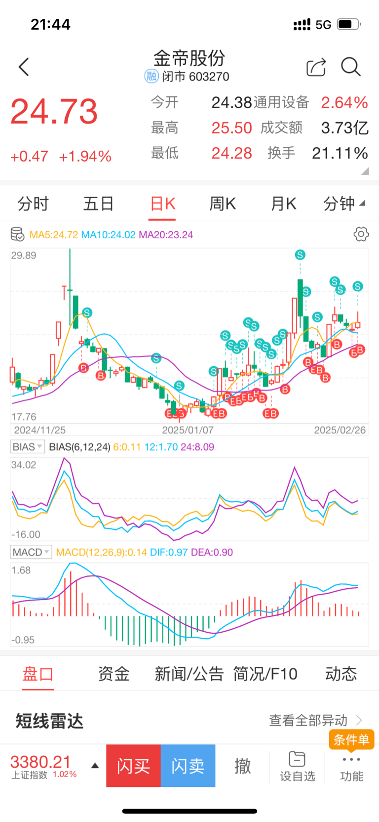 $金帝股份(SH603270)$ 我又回来了 成本少了1块