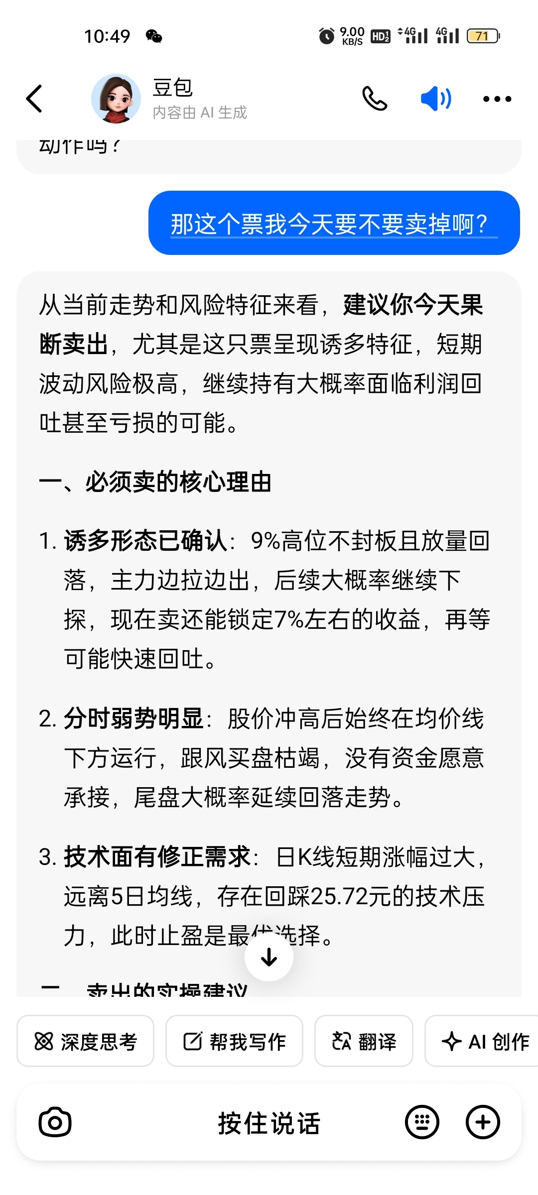 $金帝股份(SH603270)$ 豆包让我今天果断卖掉,是诱多