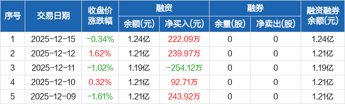 永杰新材:融资净买入222.09万元,融资余额1.24亿元(12-15)