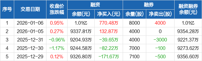 永杰新材:融资净买入770.48万元,融资余额1.01亿元(01-06)