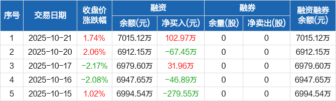 天元智能:融资净买入102.97万元,融资余额7015.12万元(10-21)