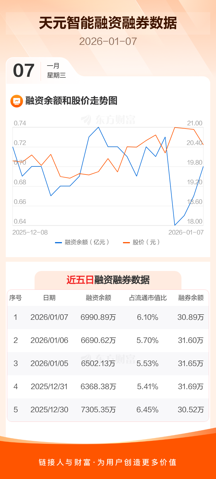 交易所最新数据显示,天元智能于2026年1月7日获融资买入834.30万元,融资偿还534.04万元,当日融资净买入300.26万元。目前,该股融资余额6990.89万,占流通市值比例为6.10%。