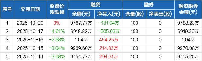 众辰科技:融资净偿还131.04万元,融资余额9787.77万元(10-20)