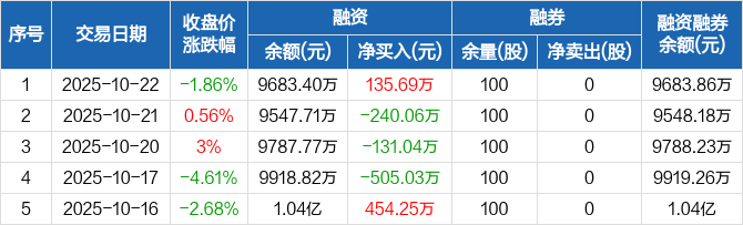 众辰科技:融资净买入135.69万元,融资余额9683.4万元(10-22)