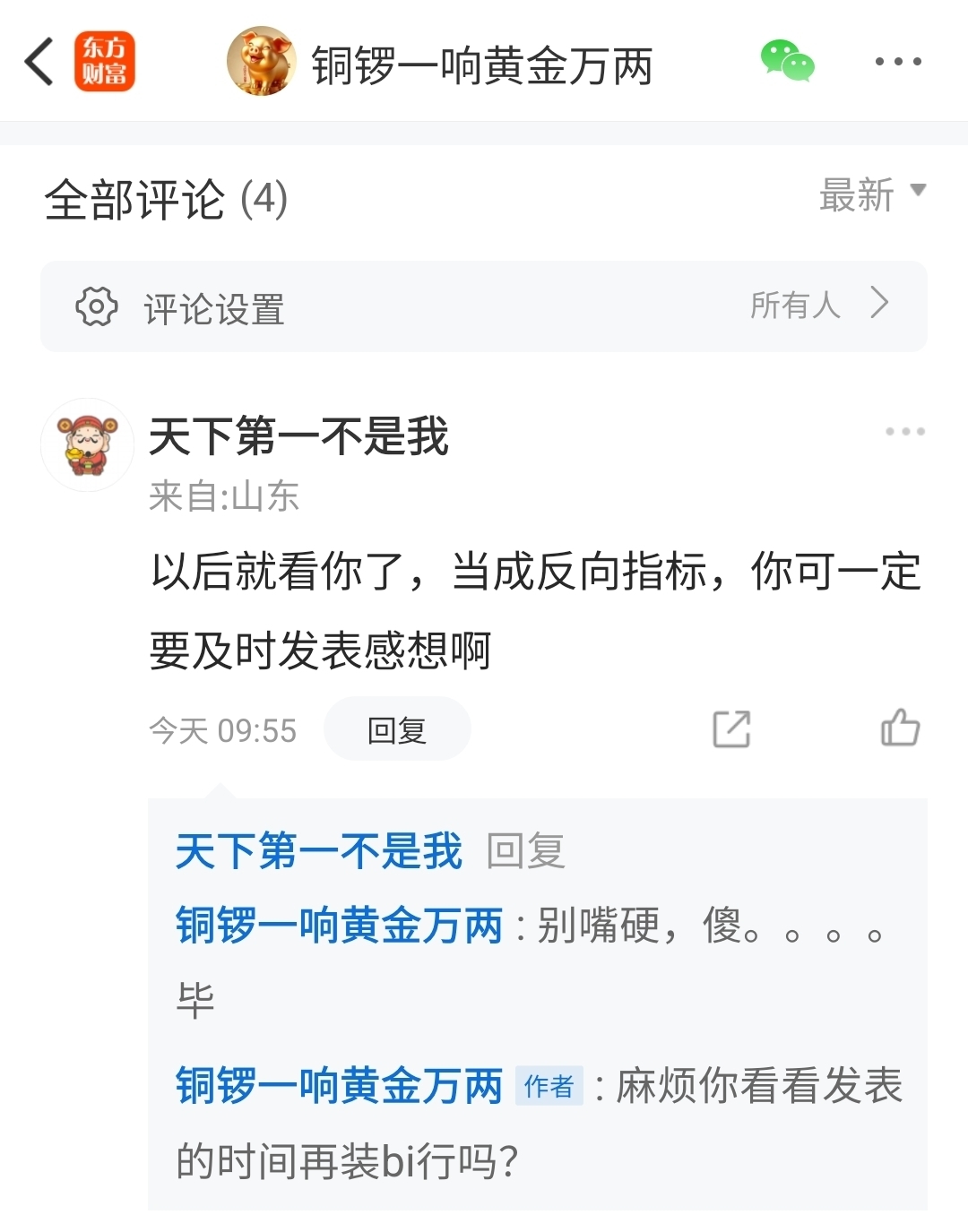 温馨提示: 1.根据《证券法》规定,禁止编造、传播虚假信息或者误导性信息,扰乱证券市场;2.用户在本社区发表的所有资料、言论等仅代表个人观点,与本网站立场无关,不对您构成任何投资建议。用户应基于自己的独立判断,自行决定证券投资并承担相应风险。《东方财富社区管理规定》