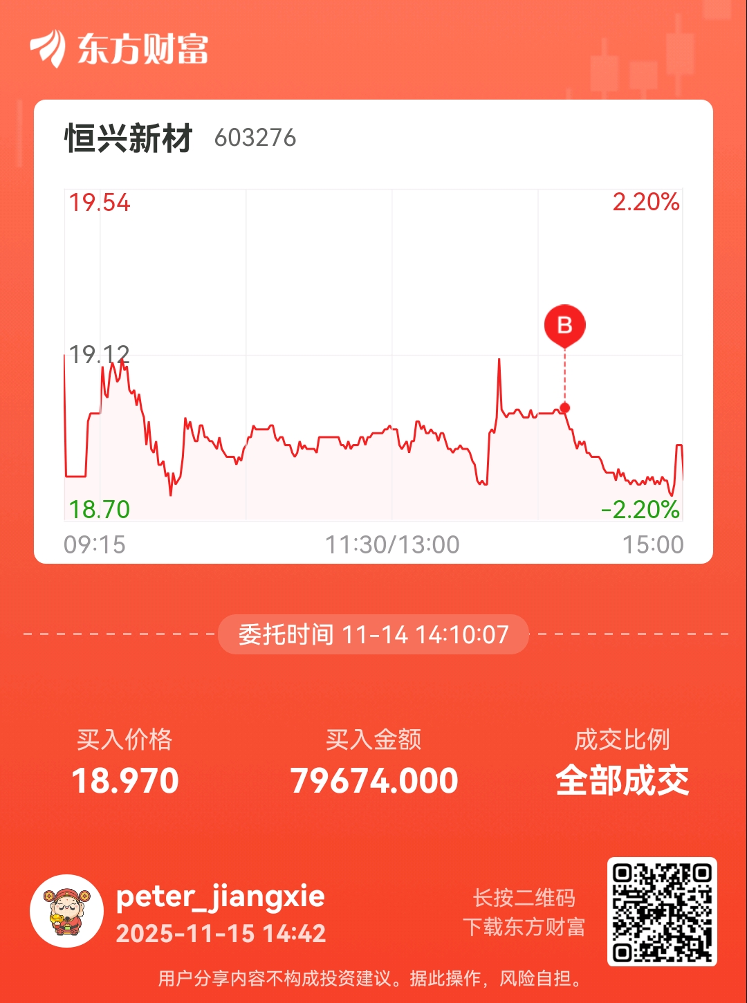 温馨提示: 1.根据《证券法》规定,禁止编造、传播虚假信息或者误导性信息,扰乱证券市场;2.用户在本社区发表的所有资料、言论等仅代表个人观点,与本网站立场无关,不对您构成任何投资建议。用户应基于自己的独立判断,自行决定证券投资并承担相应风险。《东方财富社区管理规定》
