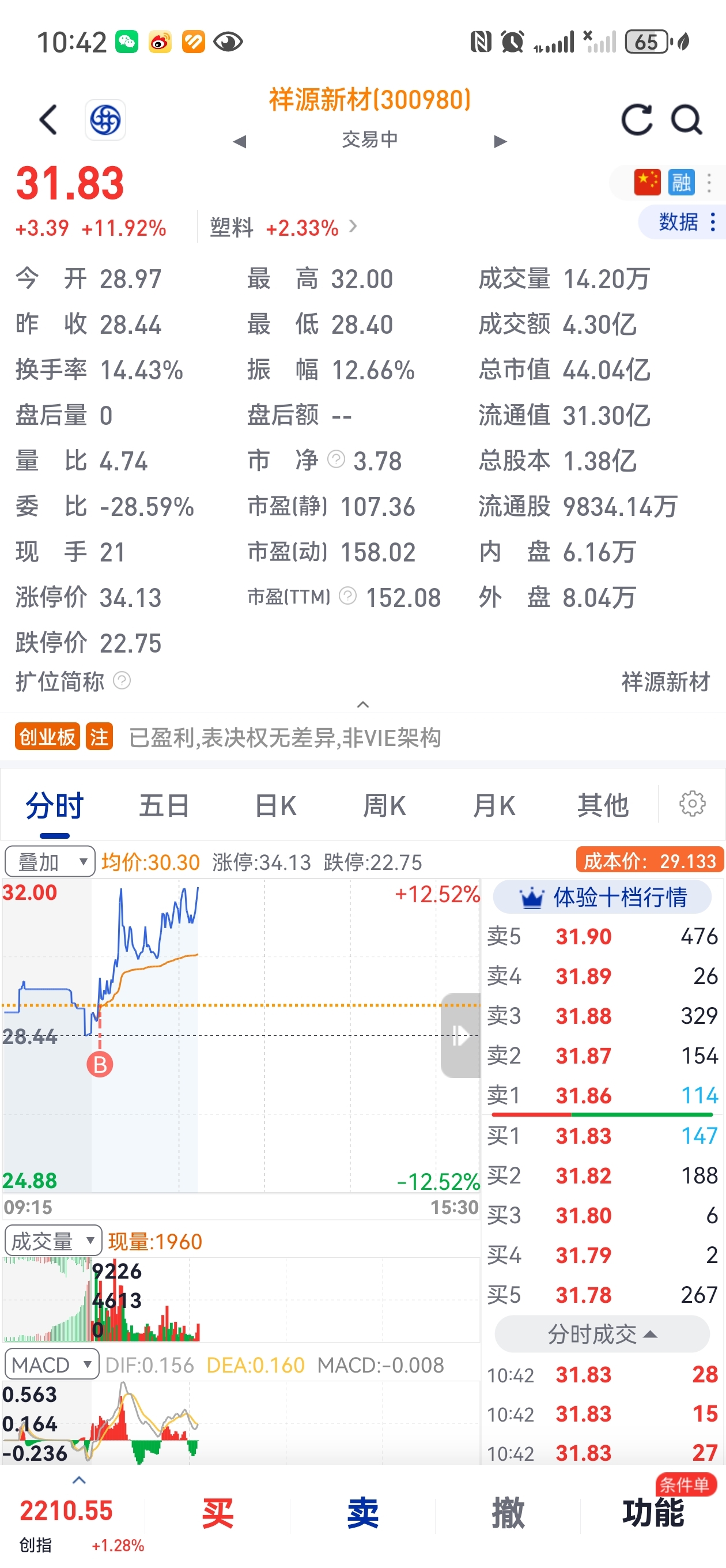 2、瞬间发现大资金在进人形机器人板块,本来想把卖出高澜股份的仓位买回大业的,发现了一只新的机器人标的祥源新材不错,因为昨天想买汉威科技的,今天早上汉威拉的太快了,本着不追高的原则,切入到低位的祥源新材