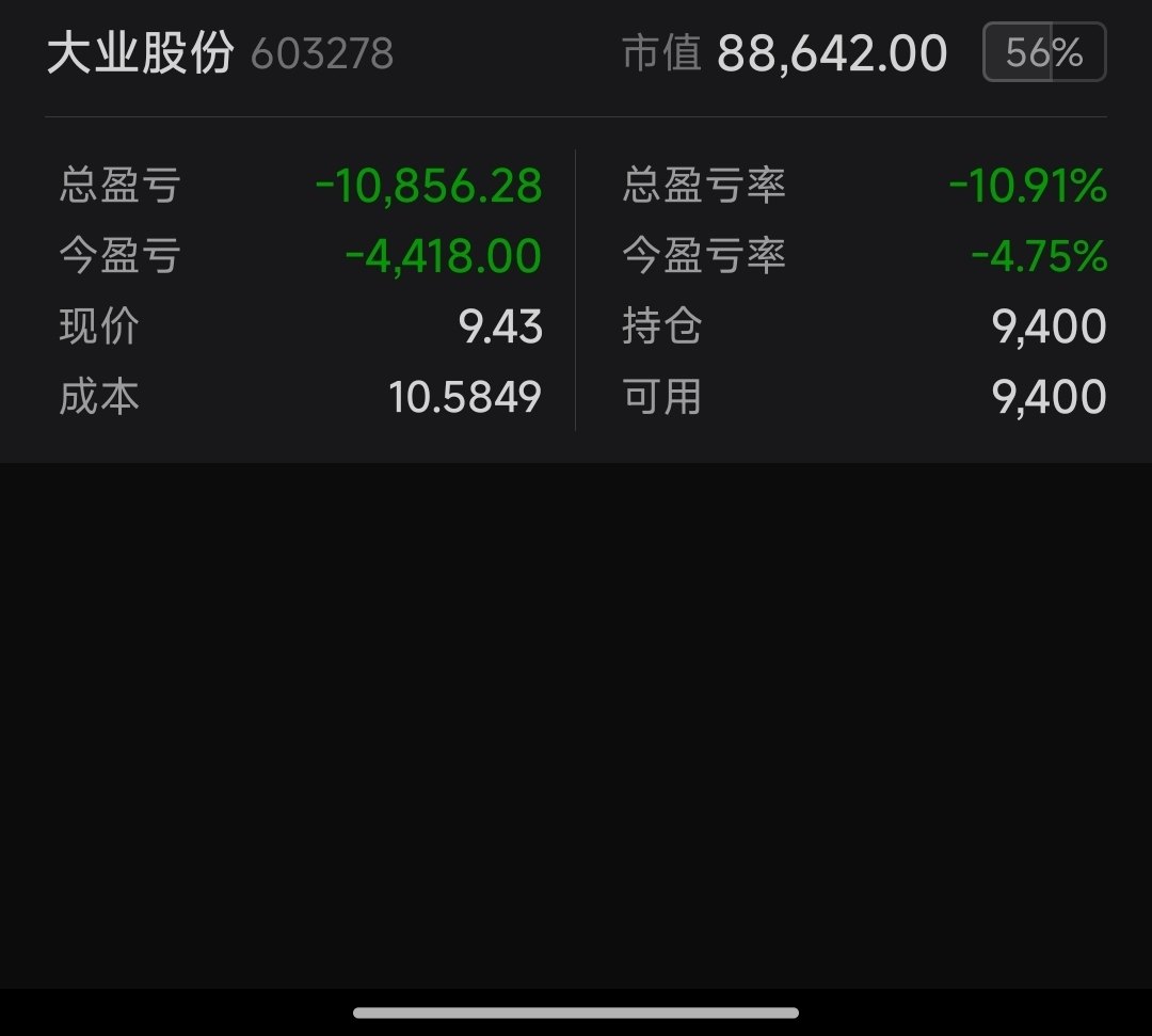 $大业股份(SH603278)$ 锁仓了,希望在明年解套。补仓成本下去了,亏的数额又多了。