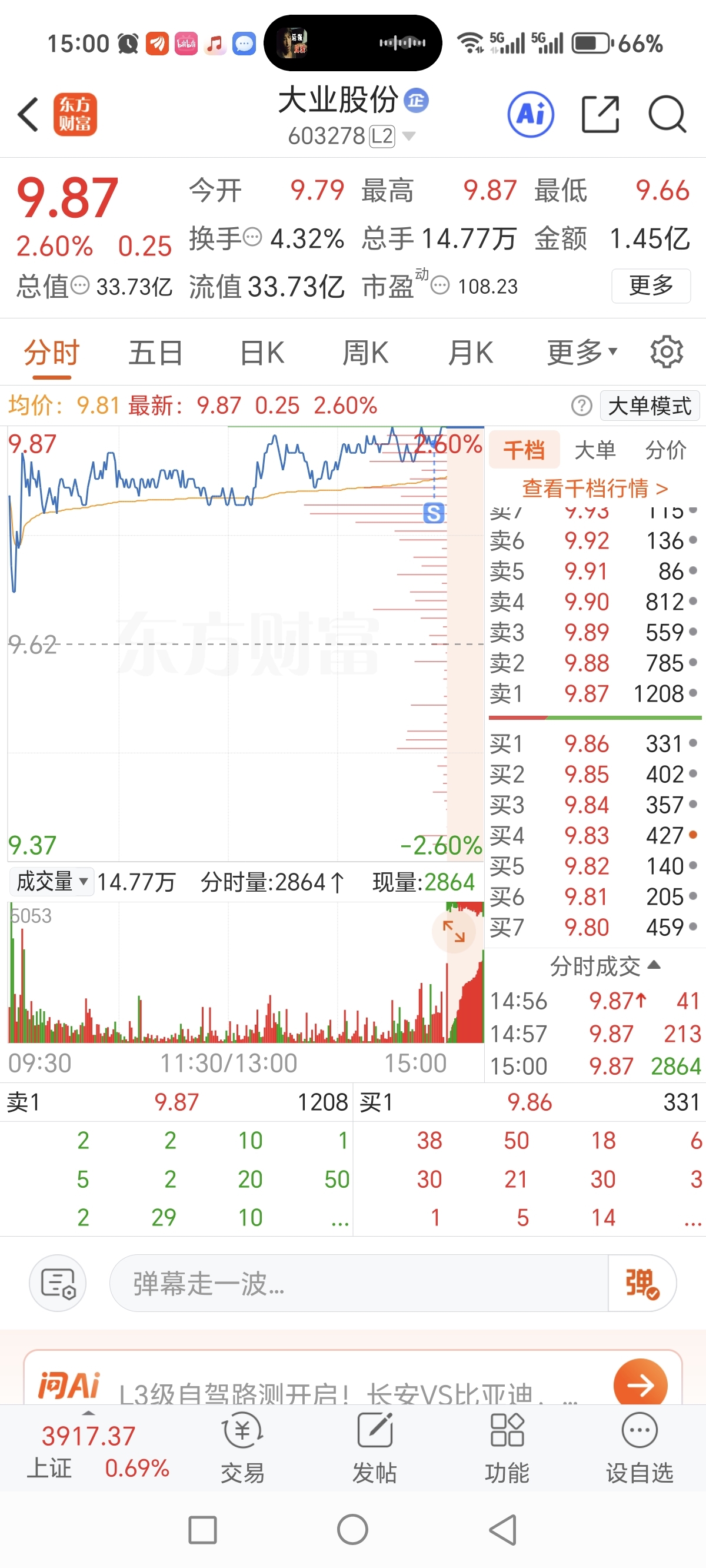 $大业股份(SH603278)$ 清仓,吃了5个点,感谢主力