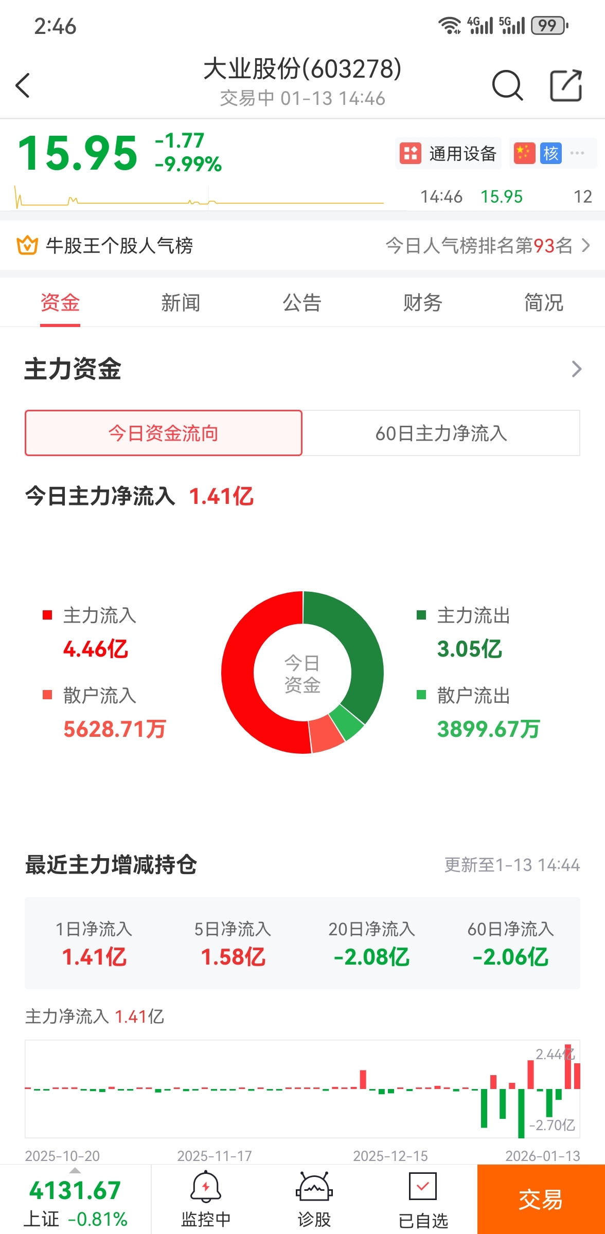 $大业股份(SH603278)$ 这是什么意思,我跌停全入了