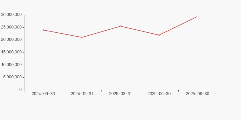 截至2025年9月30日,公司最新流通股本为5.76亿股。户均持有流通股数量由上期的2.73万股上升至2.83万股,户均流通市值45.35万元。