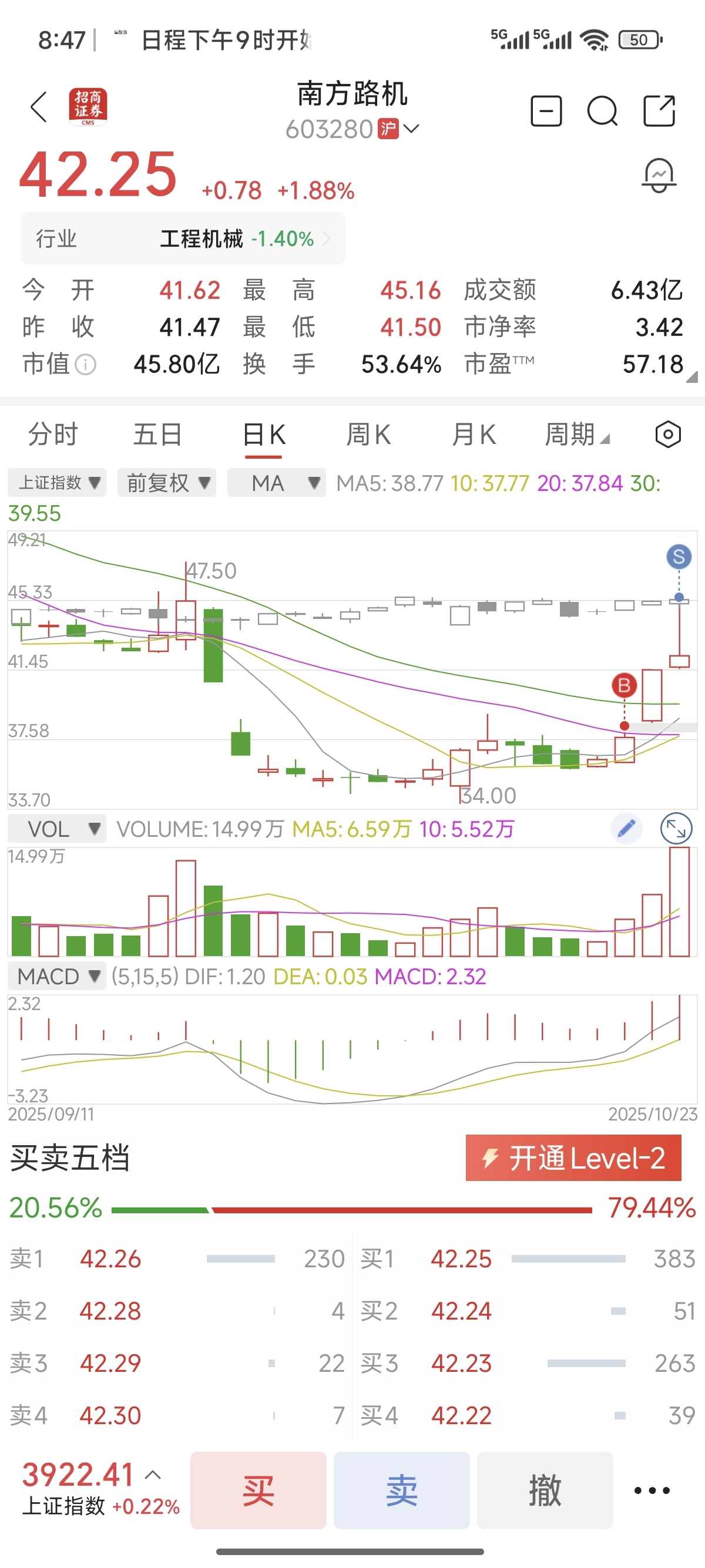 $南方路机(SH603280)$ 早上没卖好,8个点的时候没卖出去,最后回落4个点卖的