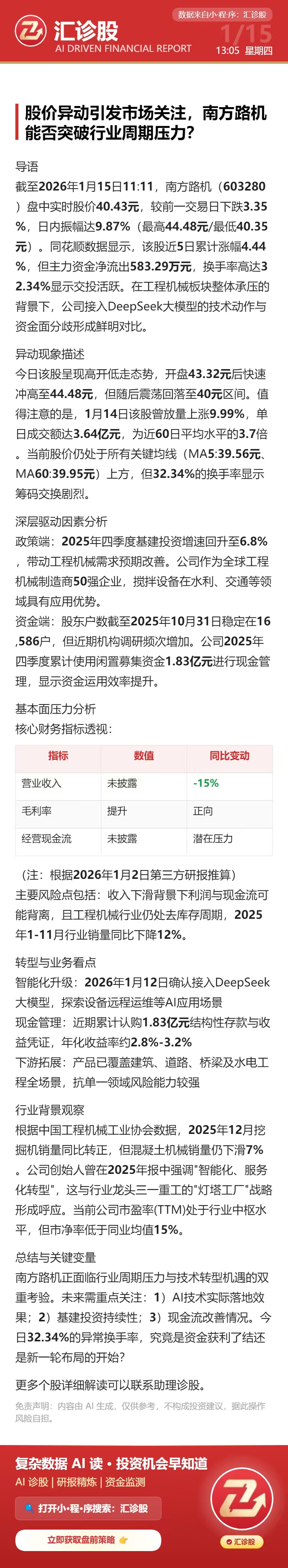 股价异动引发市场关注,南方路机能否突破行业周期压力?