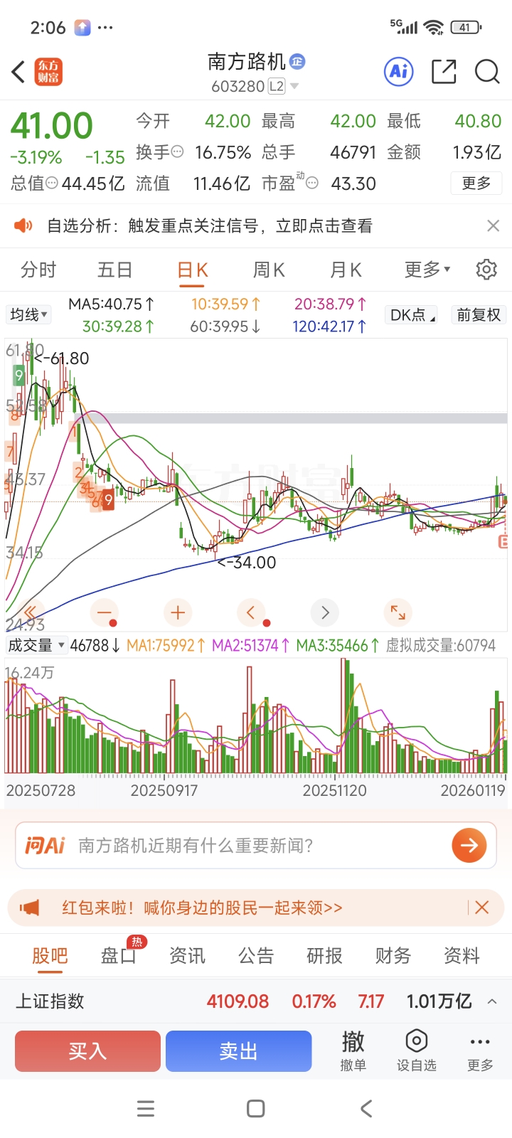 $南方路机(SH603280)$ 我来了,必涨,冲啊