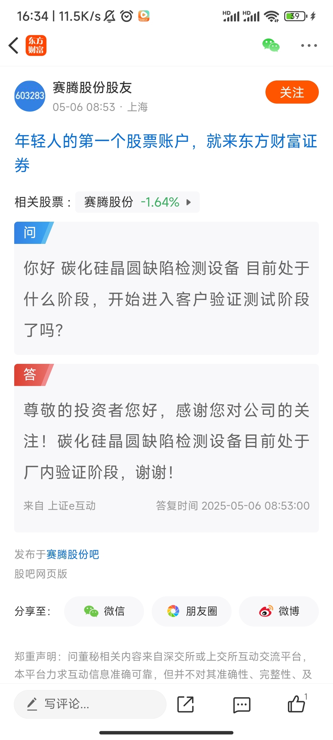 公司的研发还是挺靠谱的,从厂内验证到生产销售碳化硅。加上董秘兼董事长在收盘后连发
