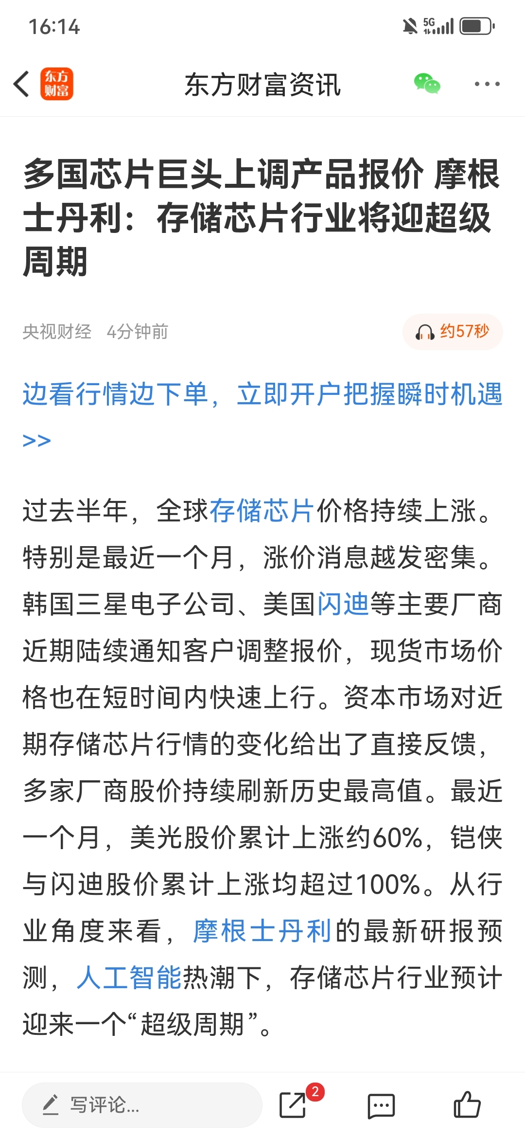 $赛腾股份(SH603283)$ 摩根士丹利的最新研报预测,人工智能热潮下,存储芯片行业预计迎来一个“超级周期”。