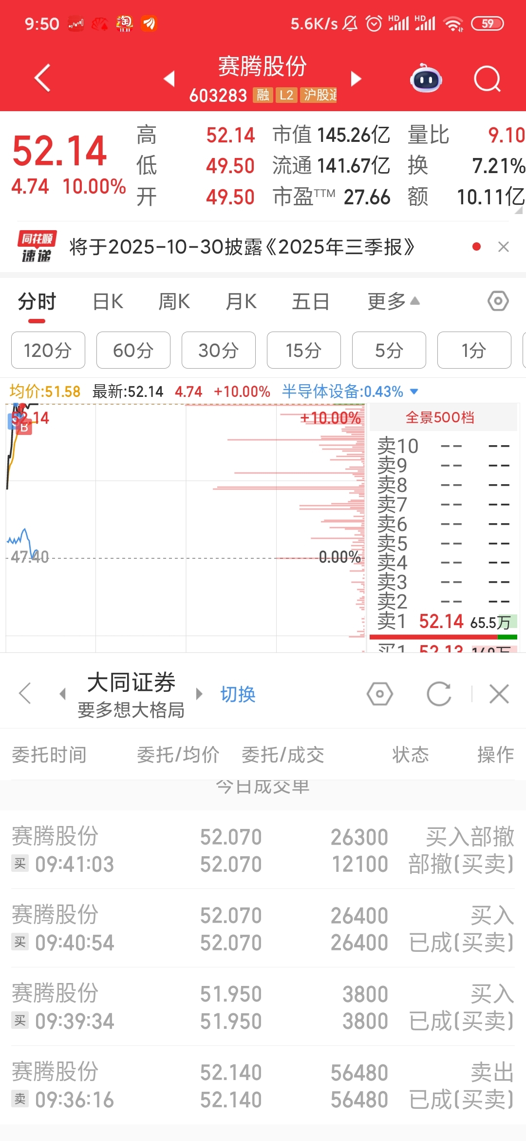 $赛腾股份(SH603283)$ 真不想卖啊,又不会做T。没办法,把利润的一百万拿出来了。本金在里面。