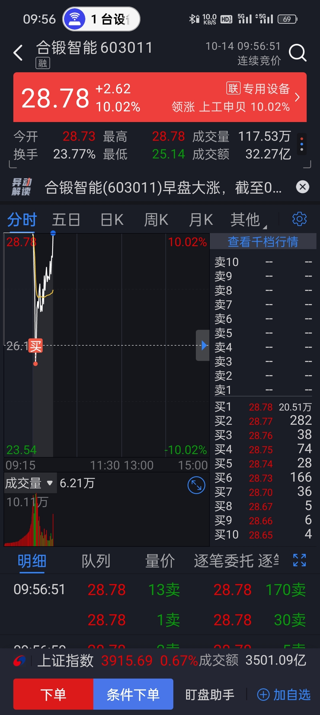 我就知道你没用,分了小仓位去了合锻,吃了涨停,赚了5000