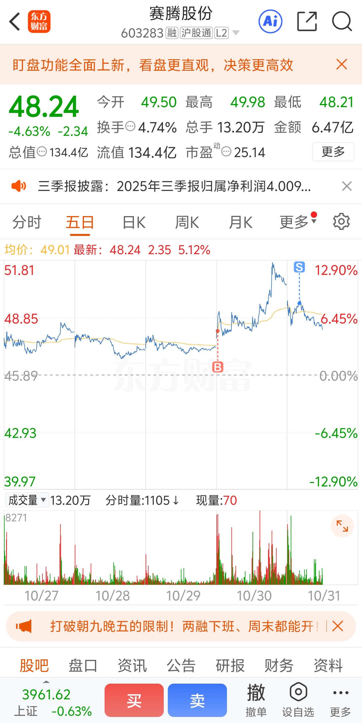 $赛腾股份(SH603283)$ 这行情没法玩!一点溢价都没有,赚一个点跑路了