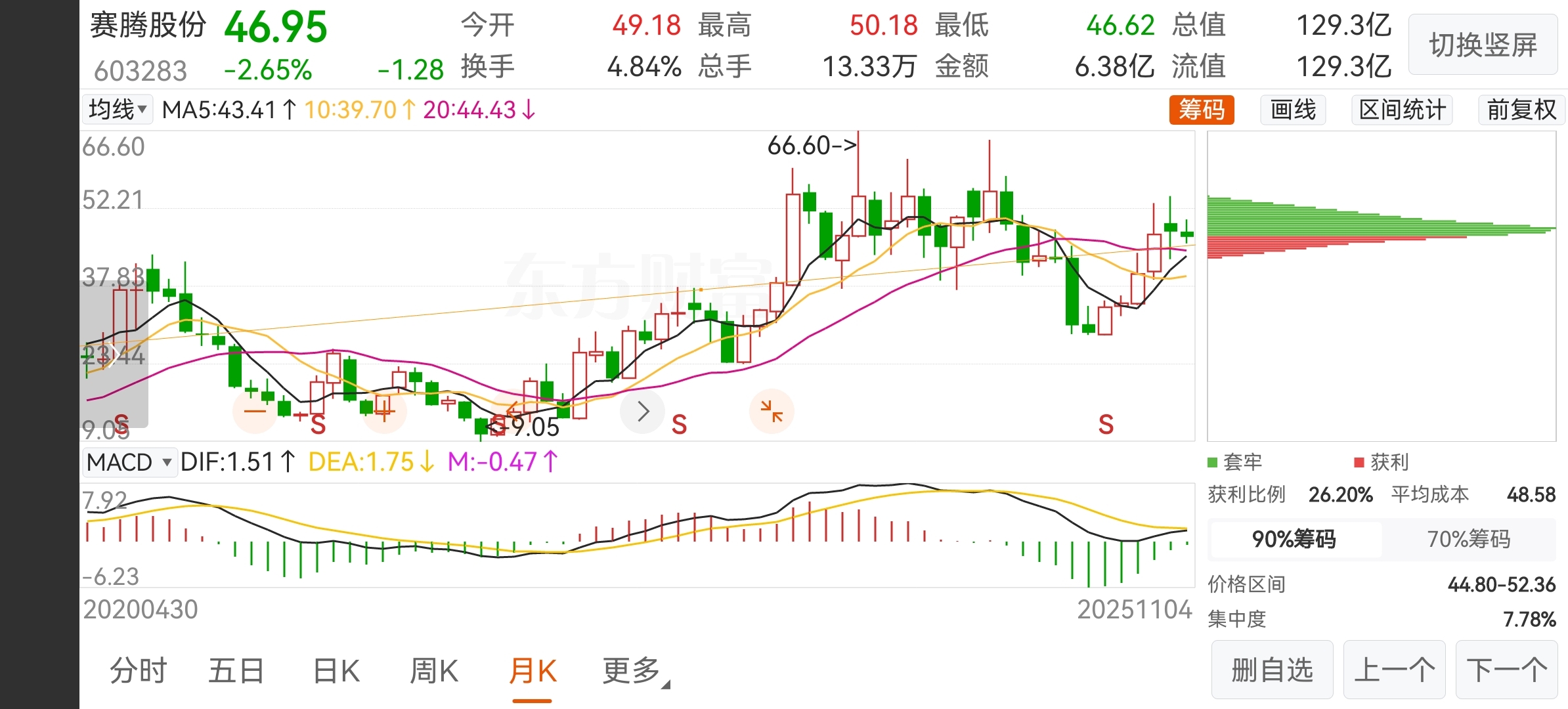 $赛腾股份(SH603283)$ 月线MACD突破0轴,年底主力要给发点红包了吧?今年指数都涨了几百点,你好像还是负增长,说不过去吧?