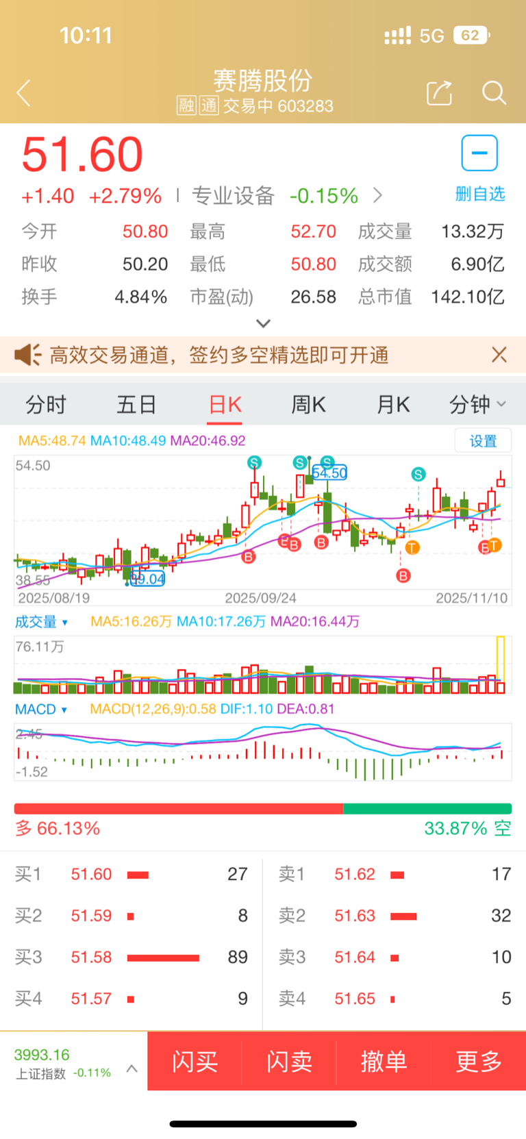 $赛腾股份(SH603283)$ 不贪 。其他股票吃的亏在赛腾上不能重蹈,我要保持胜率,仅限对赛腾