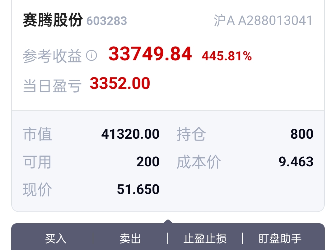 $赛腾股份(SH603283)$ 本金全部撤出,只放利润在里面了。10月份没走是最后悔的,10月份比现在还多赚2万