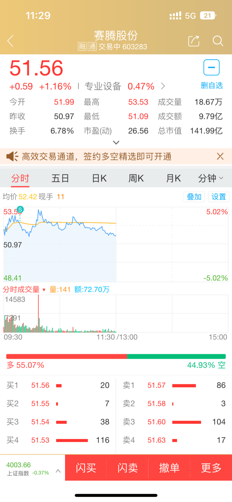 $赛腾股份(SH603283)$ 等机会再吃回来,继续看好。以前怕卖飞,不敢轻易清仓。现在随缘。