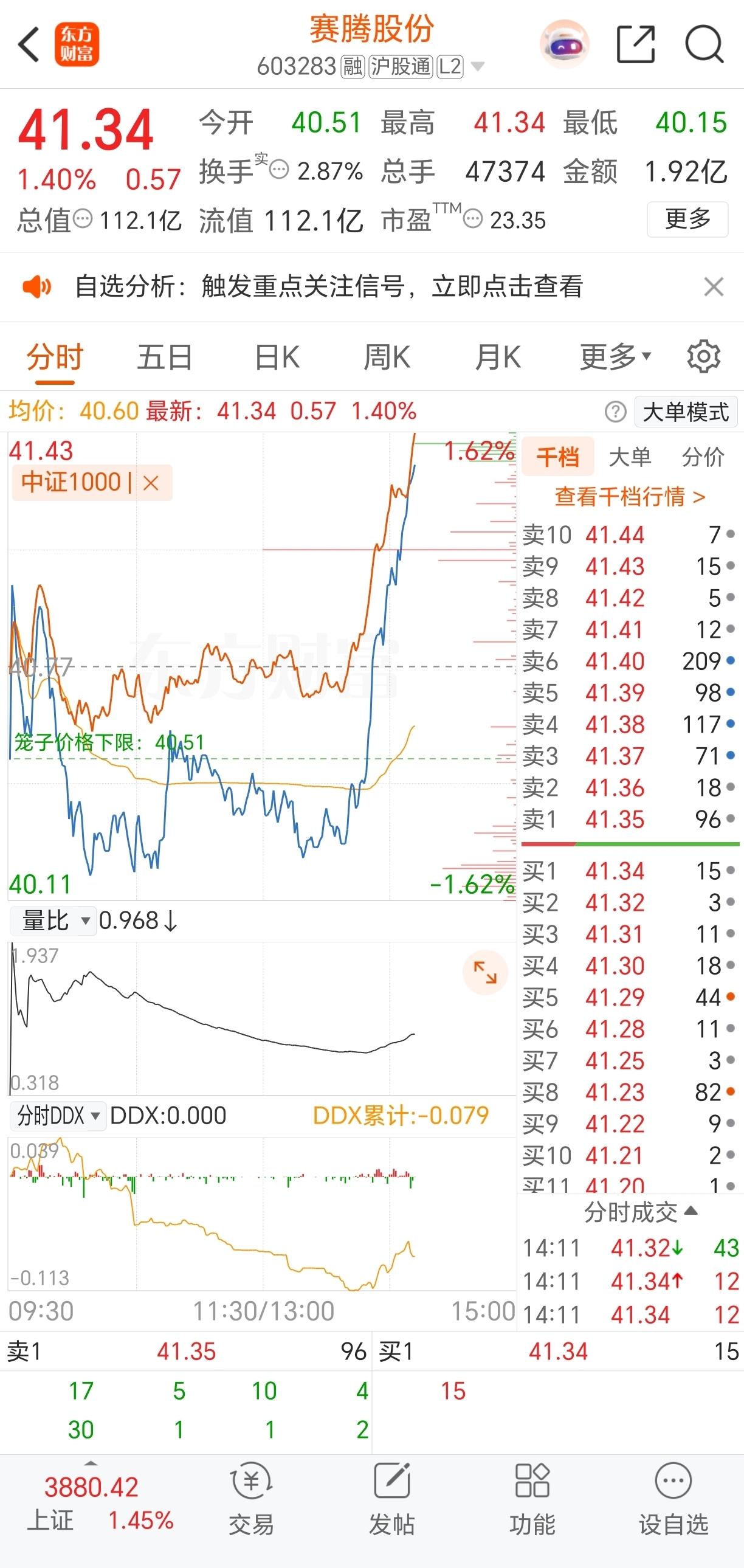 $赛腾股份(SH603283)$ 和中证1000基本是一路走的,还是量化控盘