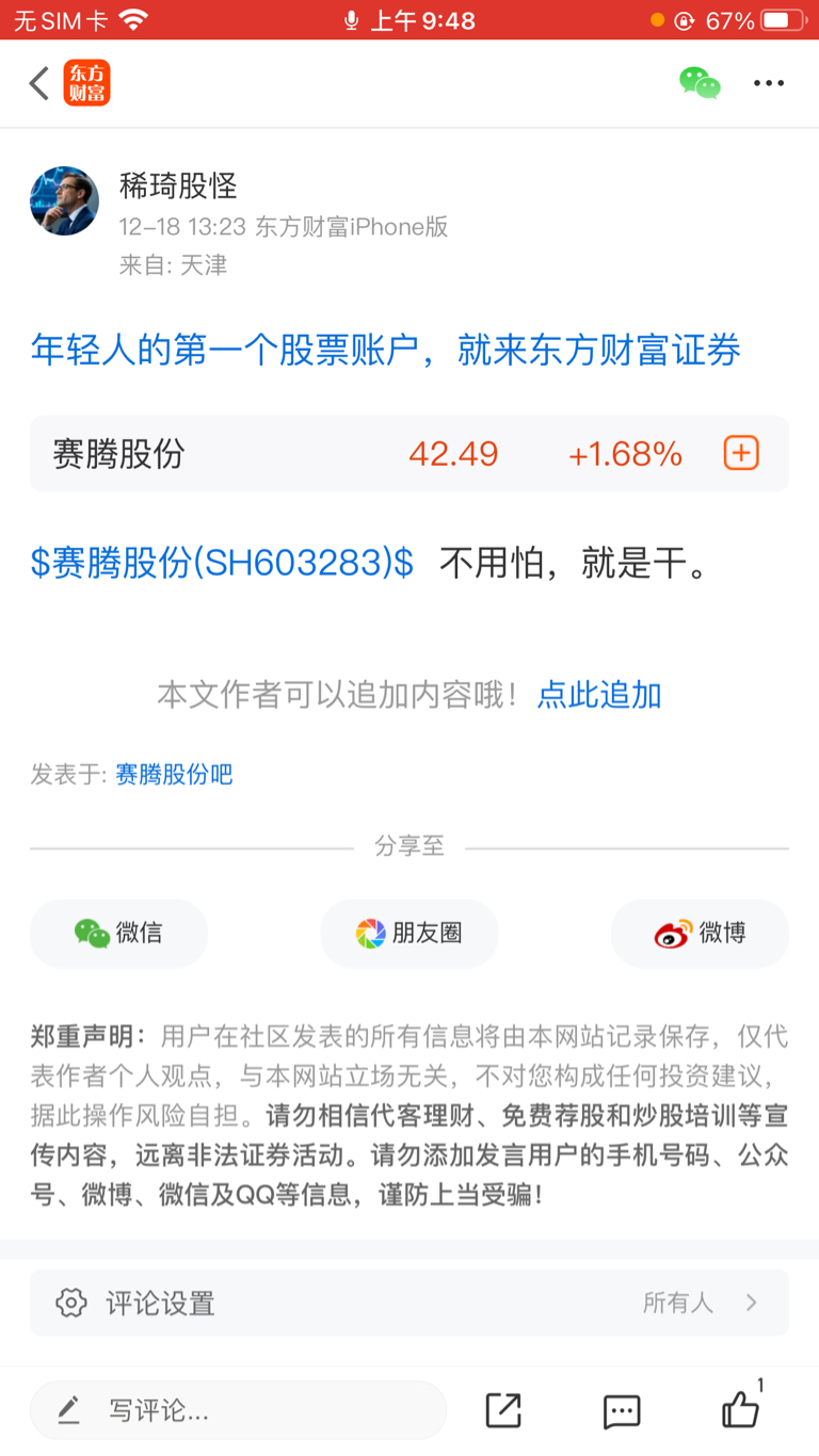 温馨提示: 1.根据《证券法》规定,禁止编造、传播虚假信息或者误导性信息,扰乱证券市场;2.用户在本社区发表的所有资料、言论等仅代表个人观点,与本网站立场无关,不对您构成任何投资建议。用户应基于自己的独立判断,自行决定证券投资并承担相应风险。《东方财富社区管理规定》