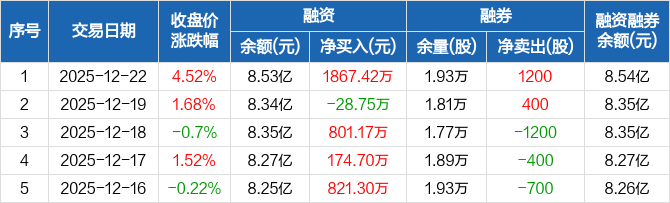 赛腾股份:融资净买入1867.42万元,融资余额8.53亿元(12-22)