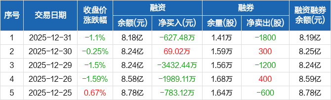 赛腾股份:融资净偿还627.48万元,融资余额8.18亿元(12-31)