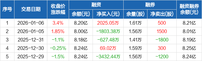 赛腾股份:融资净买入2025.05万元,融资余额8.2亿元(01-06)