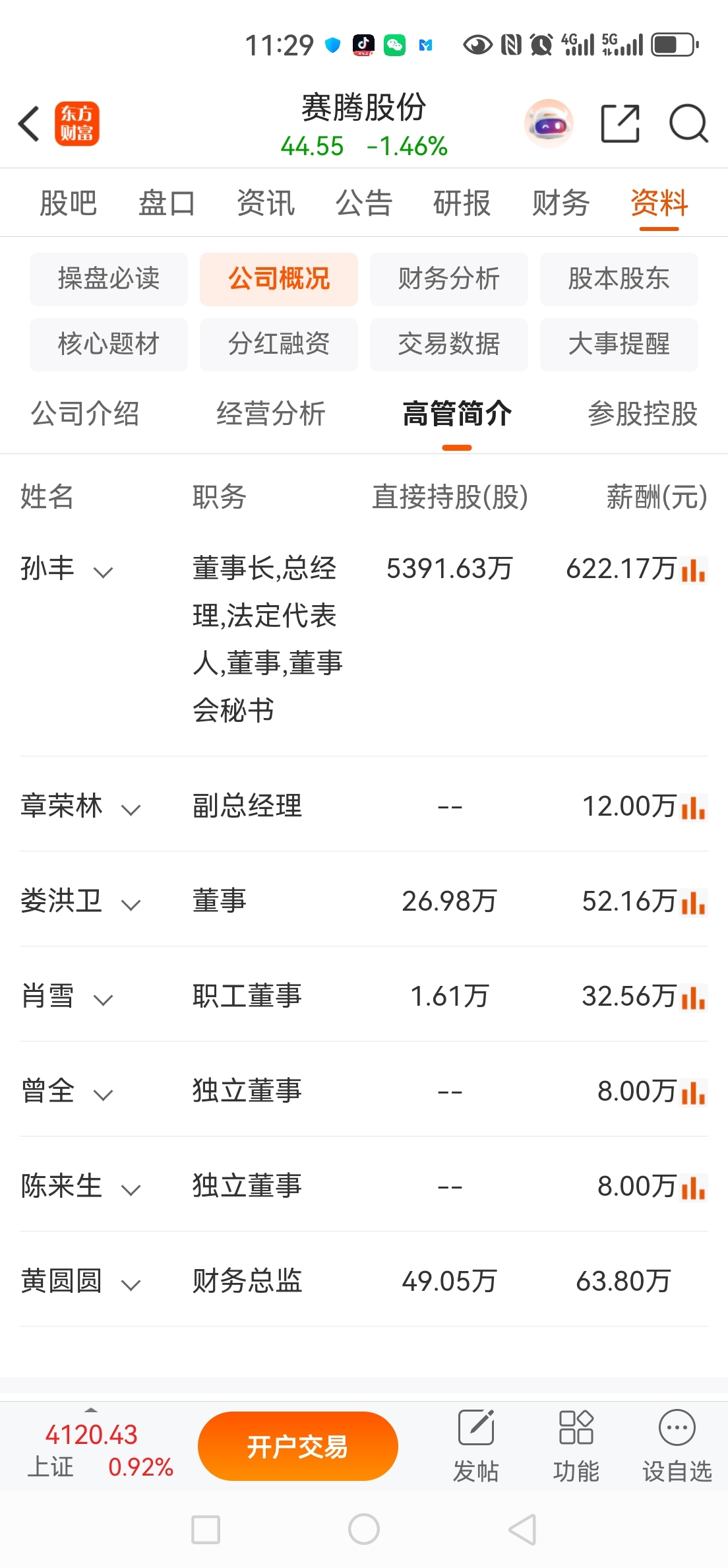 $赛腾股份(SH603283)$ 为什孙丰的工资这么高,其他人这么低,自己连董秘都一肩挑!有明白的老师给分析分析。