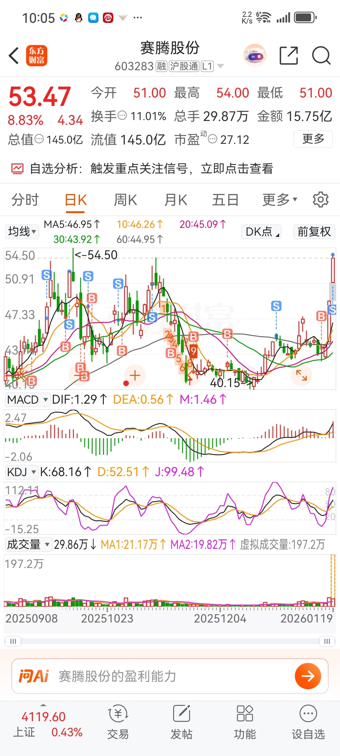 $赛腾股份(SH603283)$ 53.8溜了!