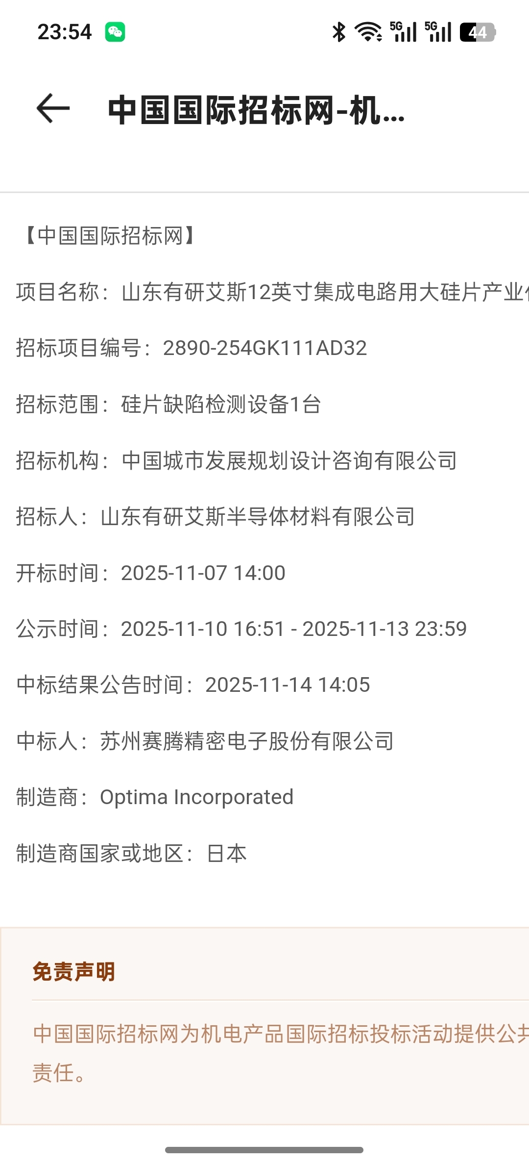 $赛腾股份(SH603283)$ 中标的信息:11月份的事了,业绩兑现需要时间,就看你们的耐心了,有人贴过吗?