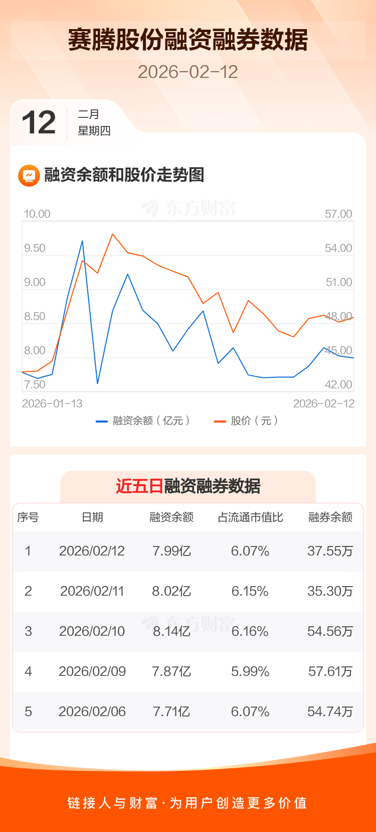 交易所最新数据显示,赛腾股份于2026年2月12日获融资买入4861.93万元,融资偿还5208.23万元,当日融资净偿还346.3万元。目前,该股融资余额7.99亿,占流通市值比例为6.07%。