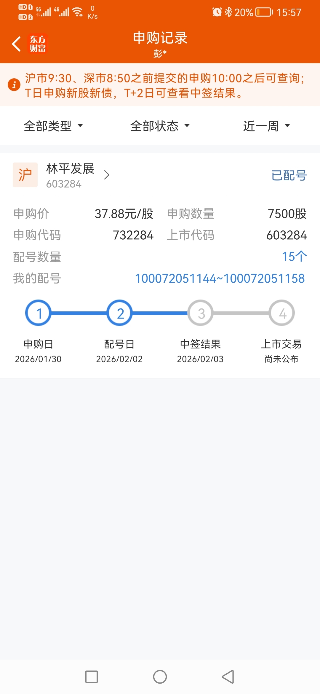 $林平发展(SH603284)$ 打卡预中签