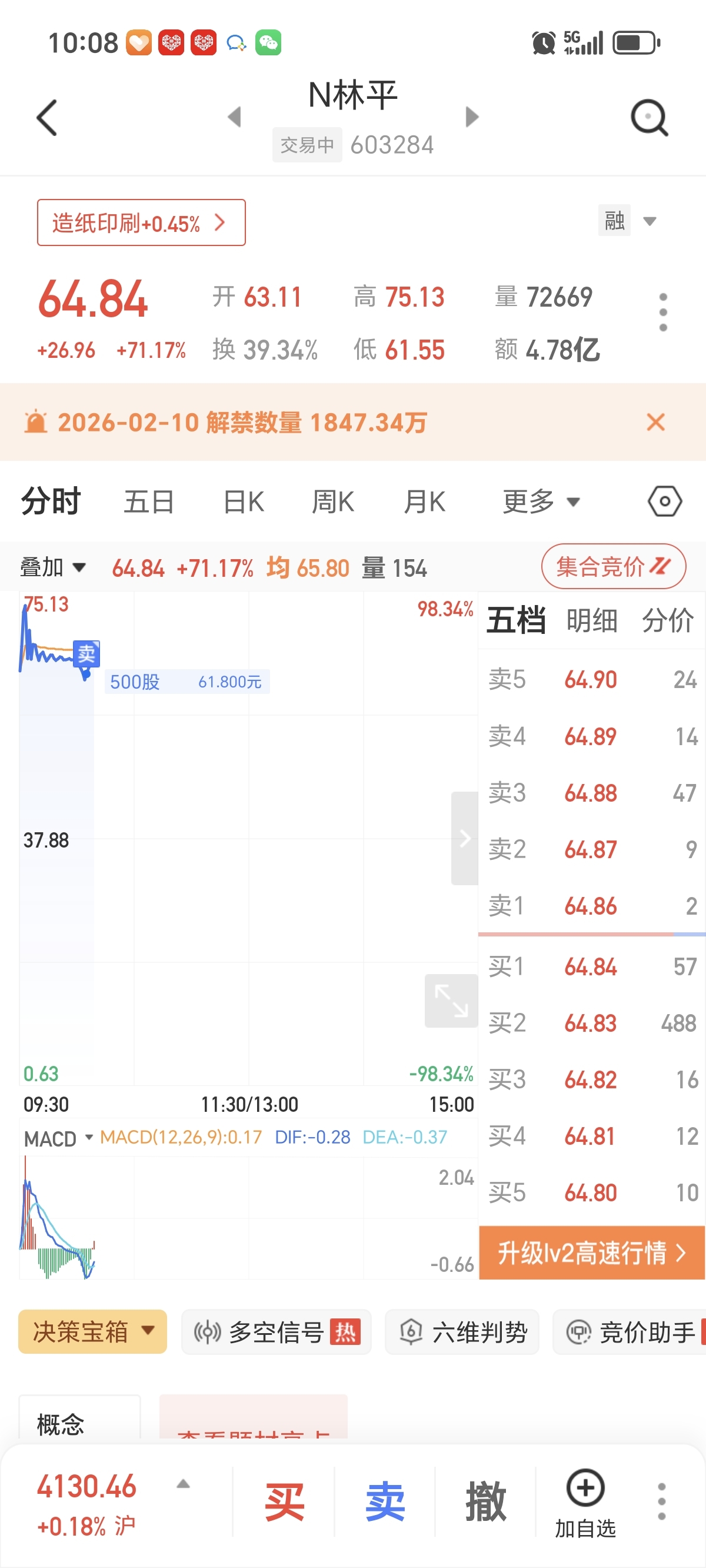 $N林平(SH603284)$ 可惜了,一激动走了