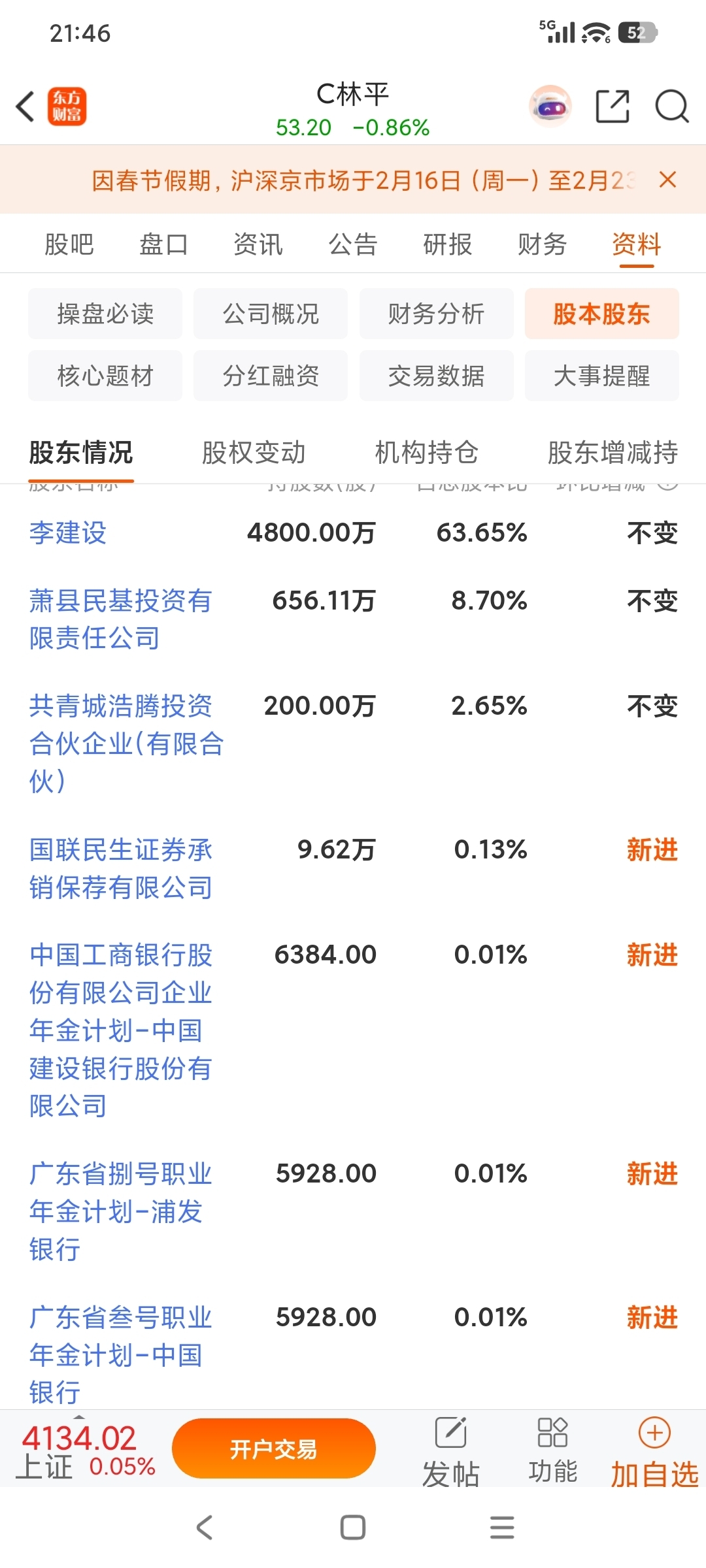 $C林平(SH603284)$
