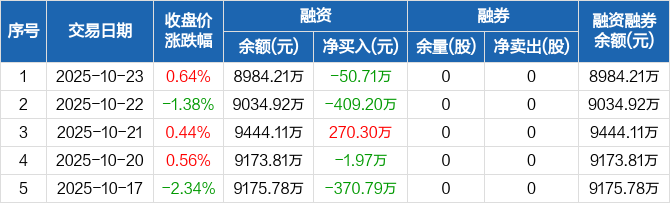 键邦股份:融资净偿还50.71万元,融资余额8984.21万元(10-23)