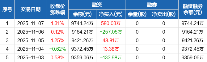 键邦股份:融资净买入580.03万元,融资余额9744.24万元(11-07)