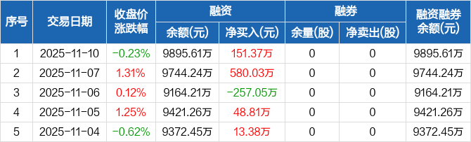 键邦股份:融资净买入151.37万元,融资余额9895.61万元(11-10)