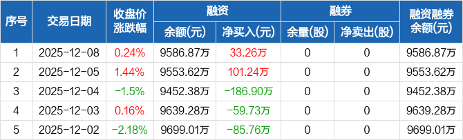 键邦股份:融资净买入33.26万元,融资余额9586.87万元(12-08)