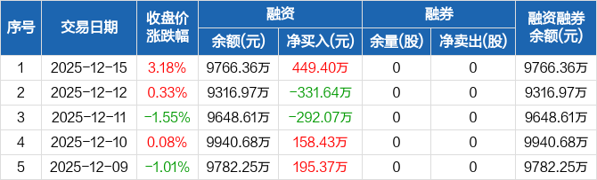 键邦股份:融资净买入449.4万元,融资余额9766.36万元(12-15)
